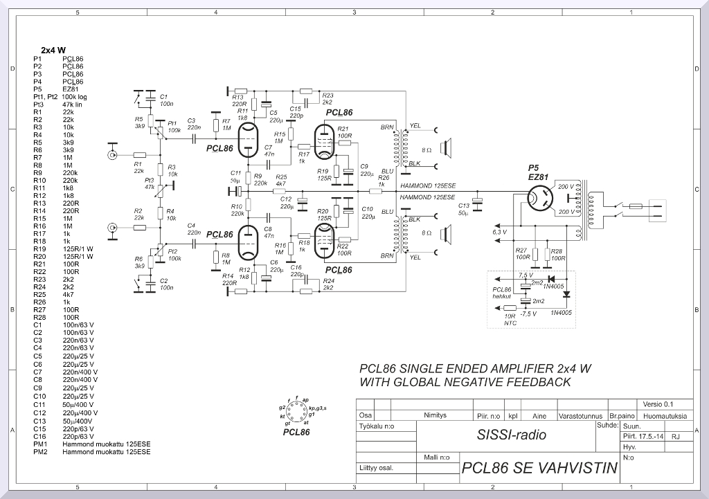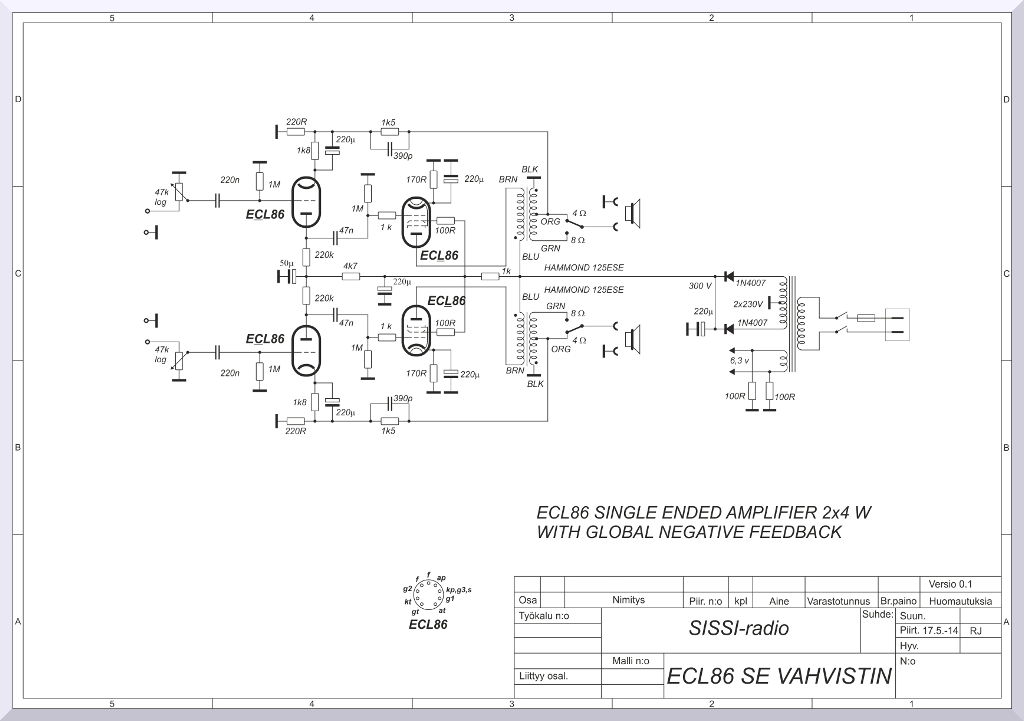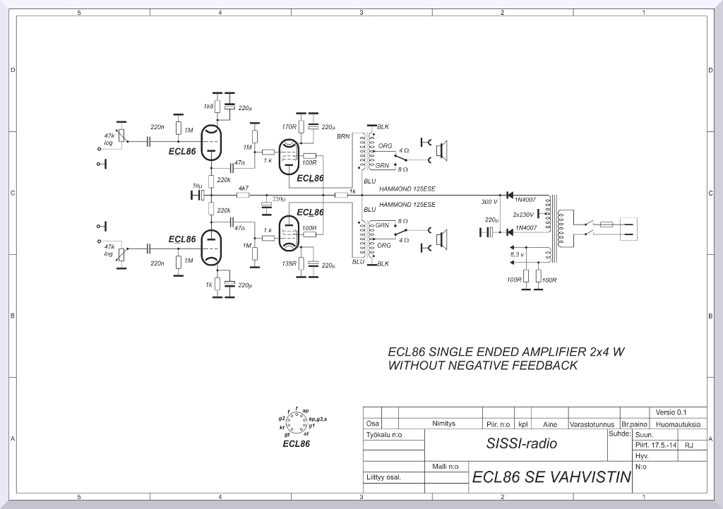 ECL86 SE VAHVISTIMEN KYTKENTÄKAAVIO ILMAN VASTAKYTKENTÄÄ