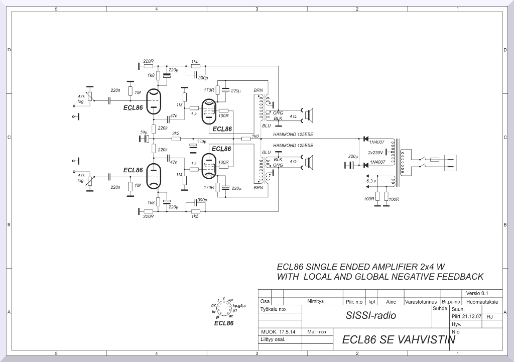 ECL86 SE vahvistimen kytkentöjen kehitys liittyy läheisesti EBL1 SE vahvistimen elektroniikan kehitykseen. ECL86 pentodi ja EBL1 pentodi ovat lähellä toisiaan ja oli mahdollista käyttää ECL86 putkea simuloinneissa ja protossa. Samalla sain testattua kolme eri versiota ECL86 SE vahvistinta.