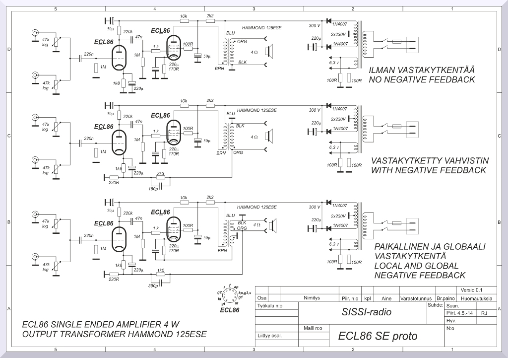 käyttää ECL86 putkea simuloinneissa ja protossa. Samalla