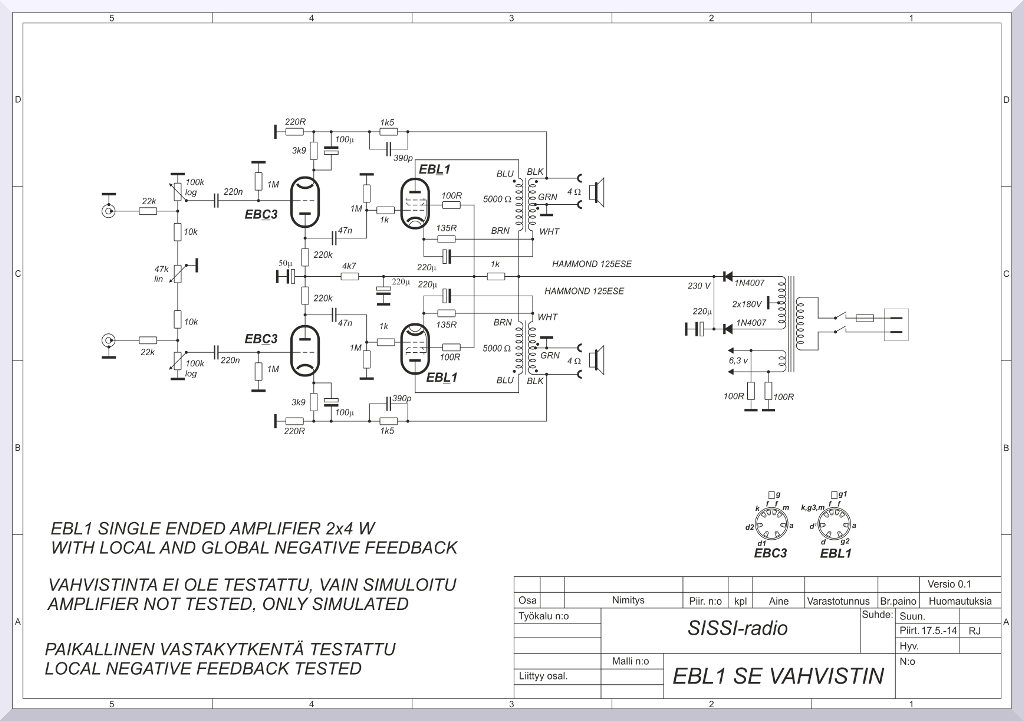 EBL1 SE-vahvistimen ensimmäinen versio |