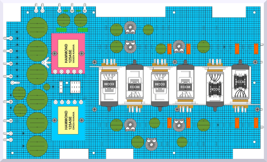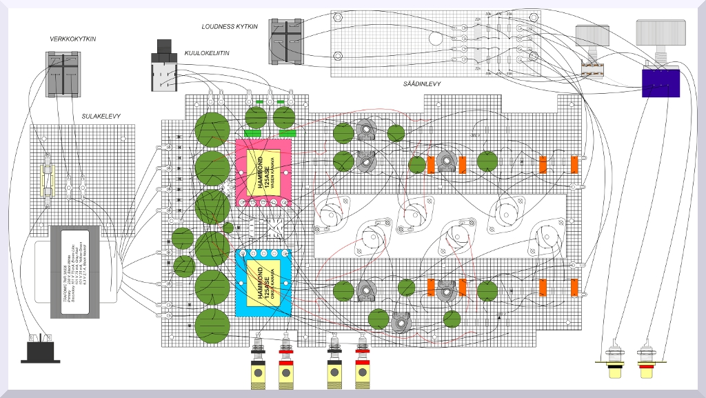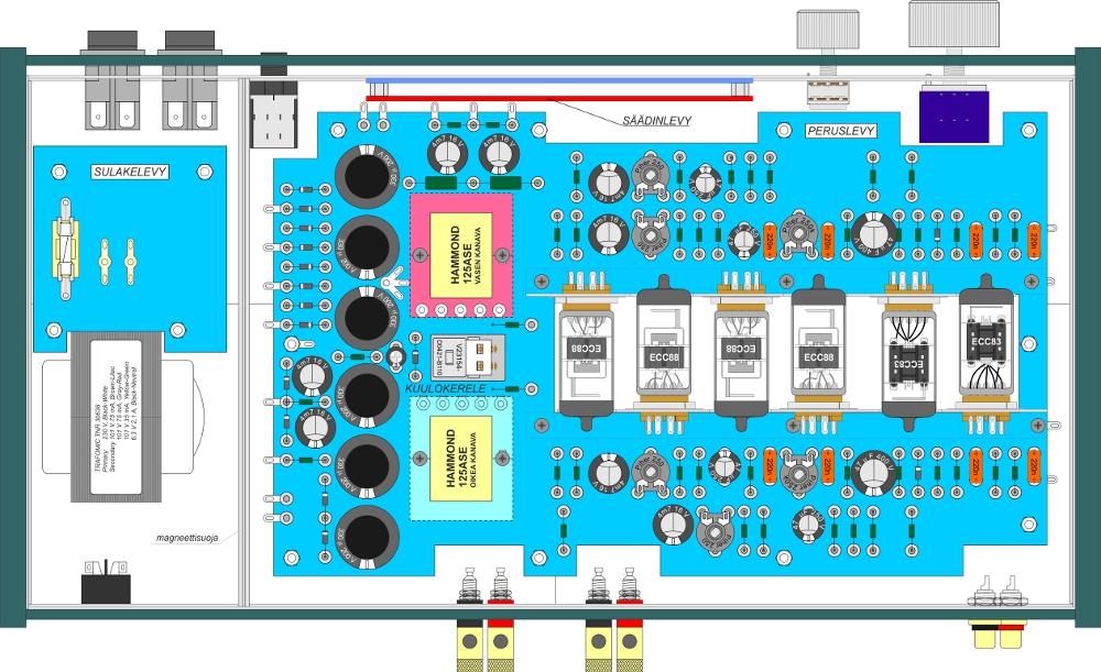 päätemuuntajat ja kuulokerele sijaitsevat peruslevyllä. |