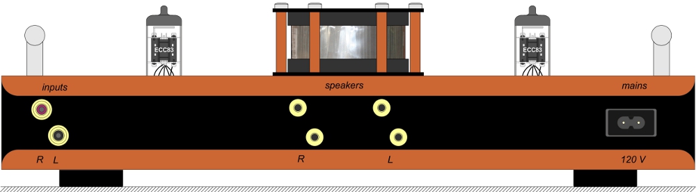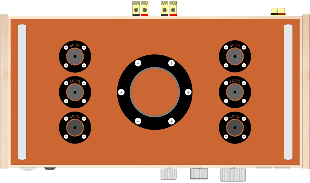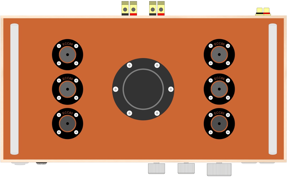 sarjan aiempien vahvistimien muotoilussa putket oli sijoitettu kotelon sisään.