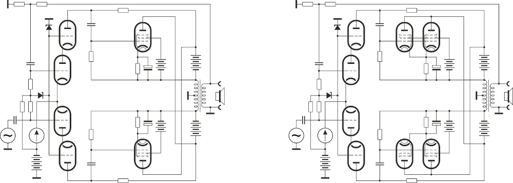 Vahvistimen tehoasteen putket voivat olla yksinkertaisia tai