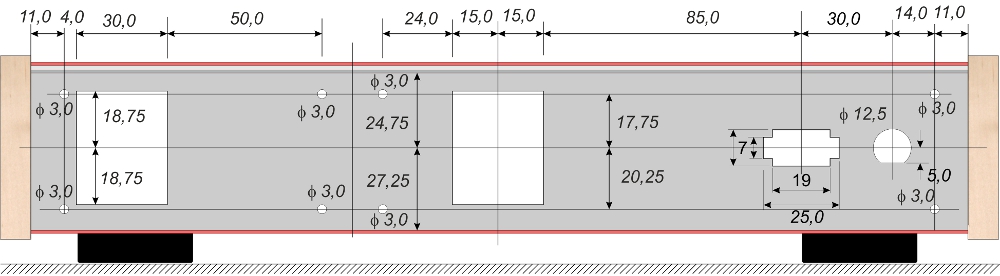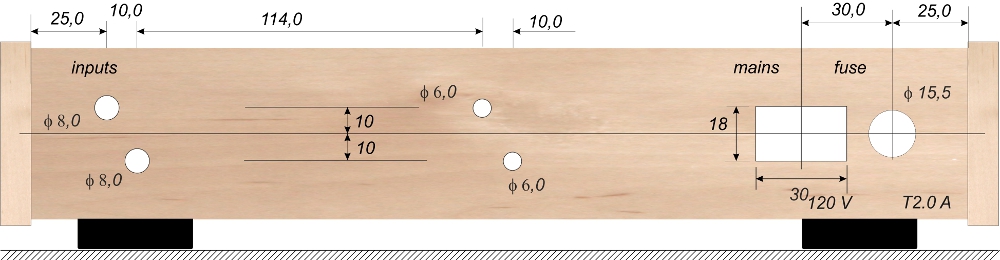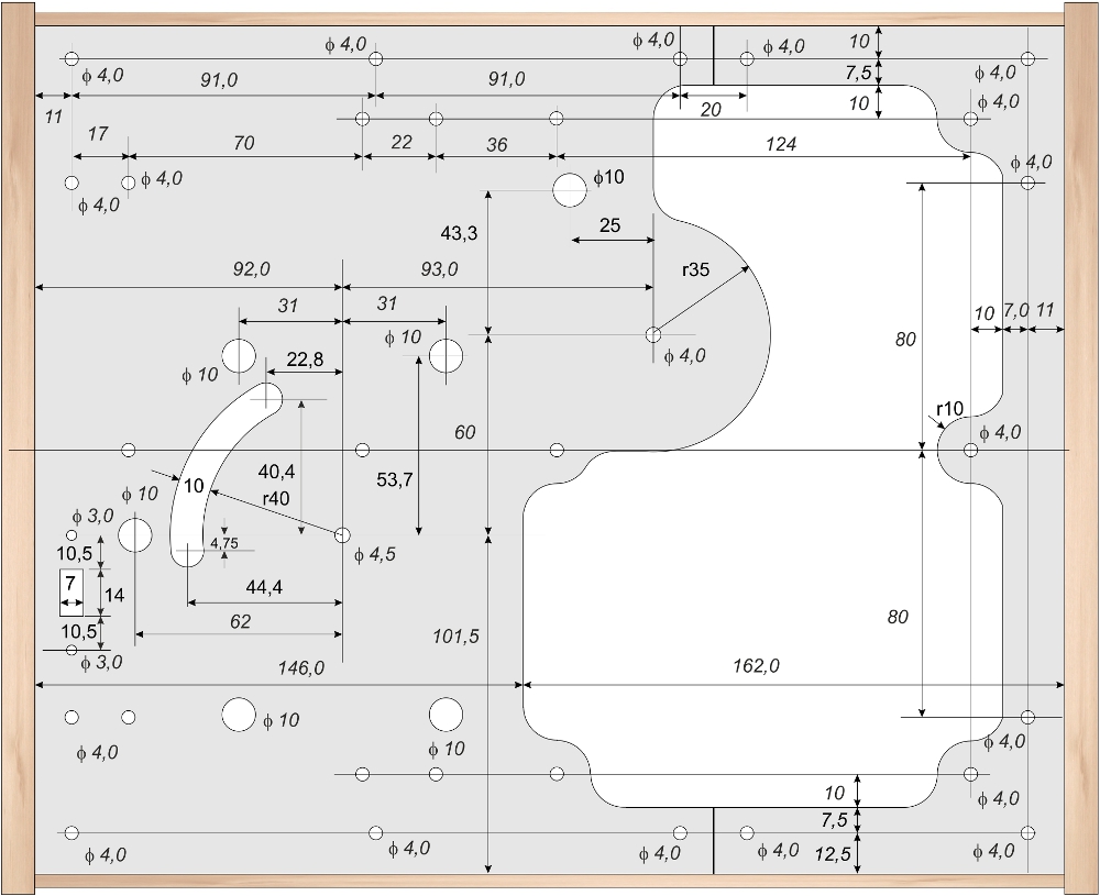 kytkimille ja säätimille. Alustan sivuille, eteen ja taakse liimataan 4 mm:n