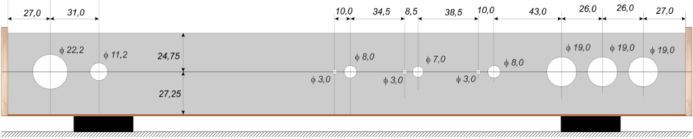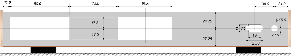 tukilevy, alempi kuva. Kuva on alapuolelta nähtynä. Tukilevy on 1,2 mm:n duralia (alumiinia).