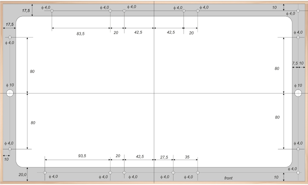 koivupaneelit. Alumiinisassiksen koko on 432x254x52. Mitat ovat millimetreinä.