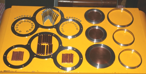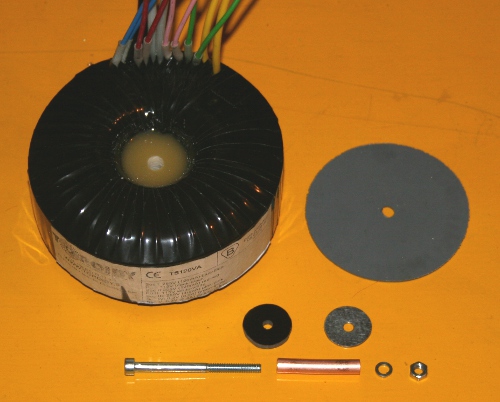 komponentit. Ylärivissä oikealla on 1mm:n kuminen aluslevy