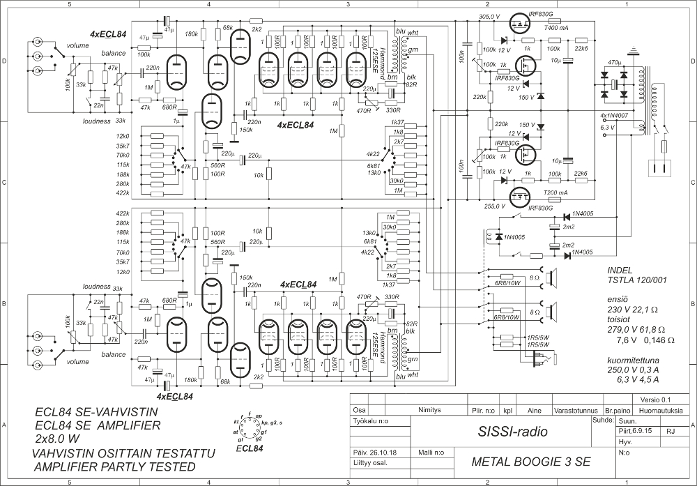 Boogie 3 SE:n kytkentä on jakautunut viiteen kytkentälevyyn, jotka ovat