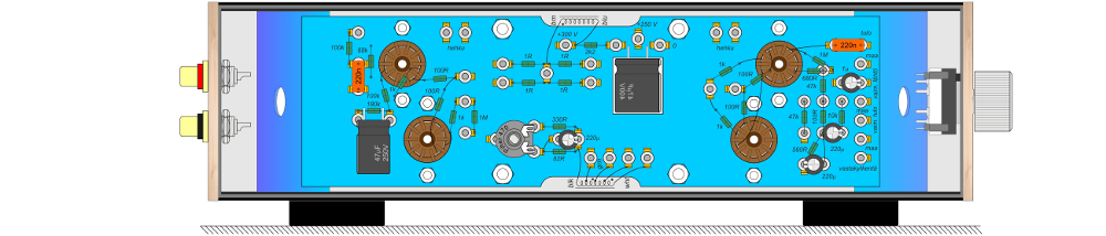 ylinnä on lomponenttien ja kytkentälevyn sijoittelukuva.