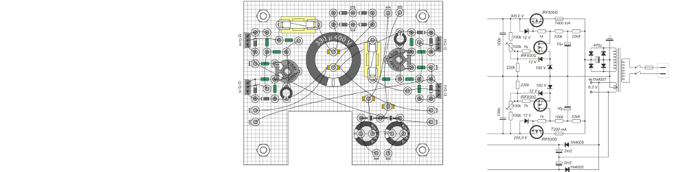 Virtalähdelevyn layout suunnitelma on kuvattuna alla.