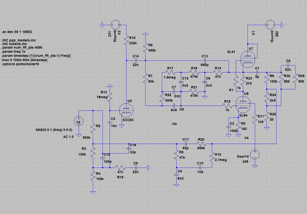 PHILIPS B6SF62A:n vahvistimen simulaatiomalli on alla.