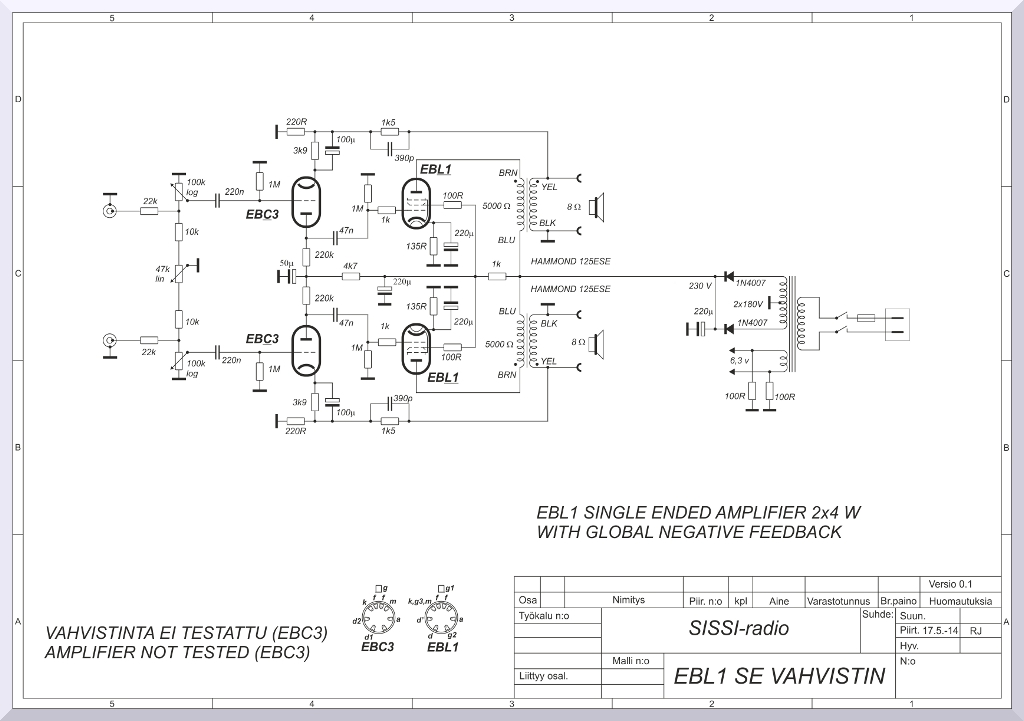 EBL1 SE-vahvistimen ensimmäinen versio |