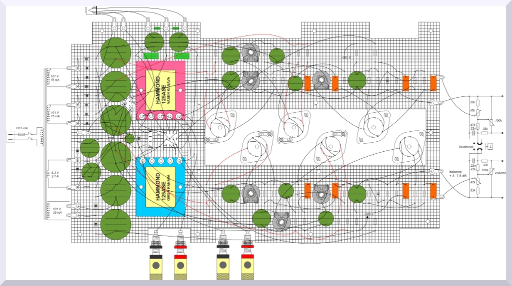 kytkentöjä sekä loudness-kytkentään liittyviä komponentteja.