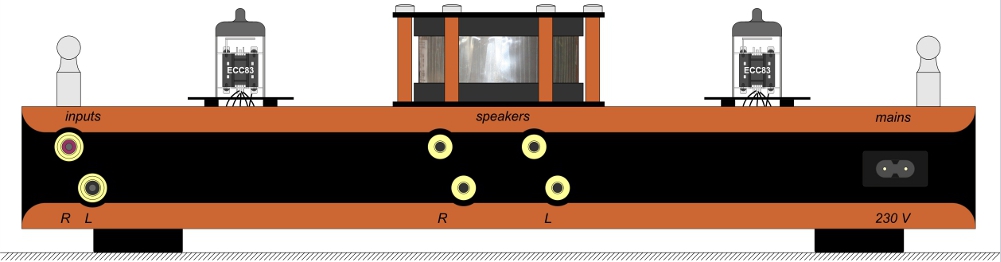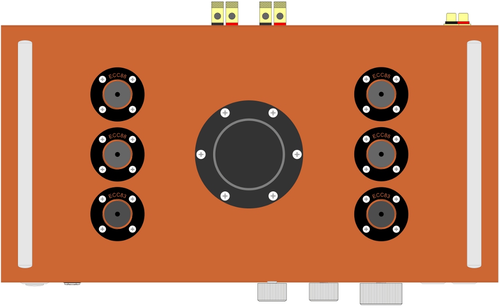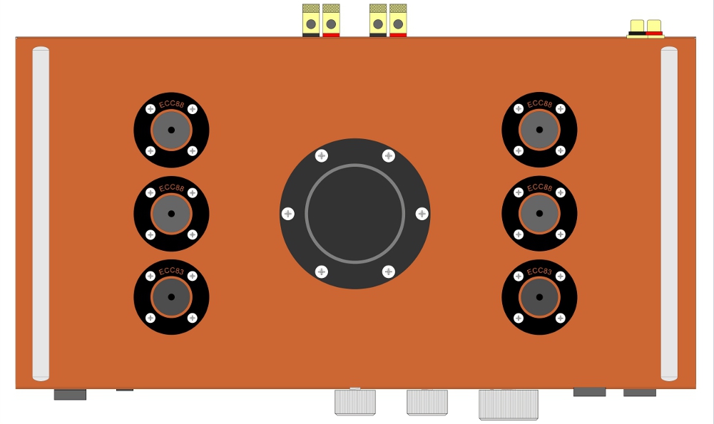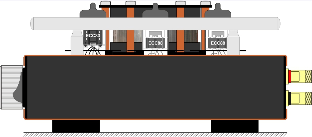 sarjan aiempien vahvistimien muotoilussa putket oli sijoitettu kotelon sisään.