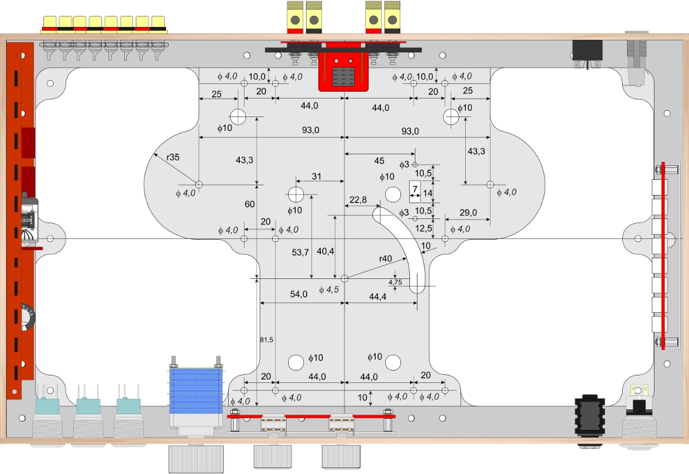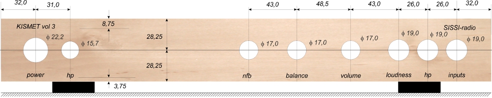 kytkimille ja säätimille. Alustan sivuille, eteen ja taakse liimataan 4 mm:n