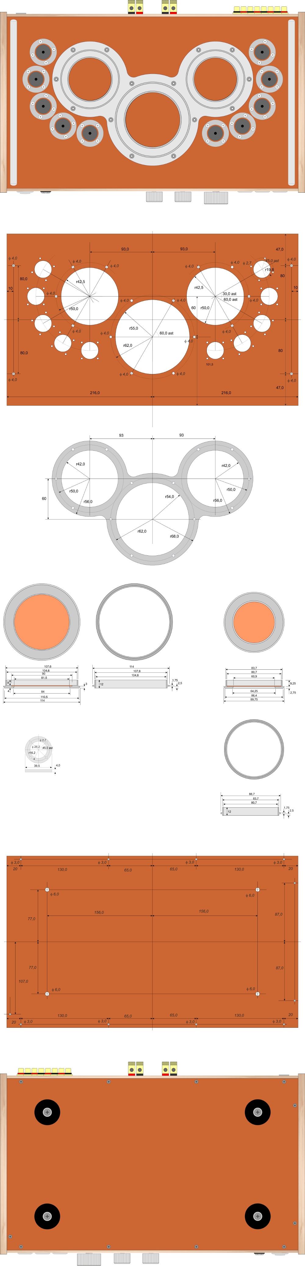 koivupaneelit. Alumiinisassiksen koko on 432x254x52. Mitat ovat millimetreinä.