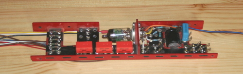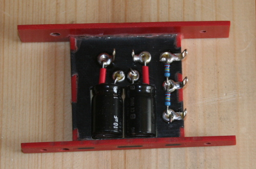 Vahvistimen takaosaan tulevan kuulokereleen pidin on valmistunut, kuva