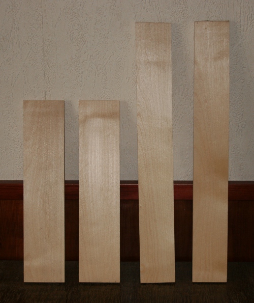 tulevien paneelien aihiot. Paneelit ovat koivua.