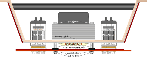 pitkien m4 ruuvien käyttöön. Nyt vahvistinlevyt kiinnitetään