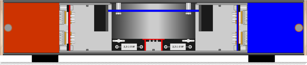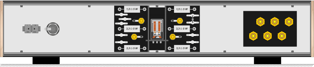 oikea ja vasen vahvistin, virtalähde, kuulokereleen
