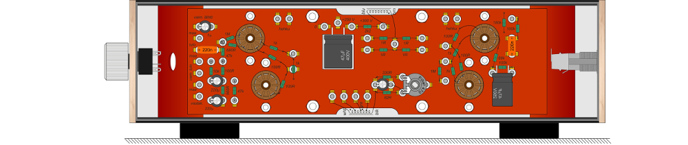 ylinnä on lomponenttien ja kytkentälevyn sijoittelukuva.
