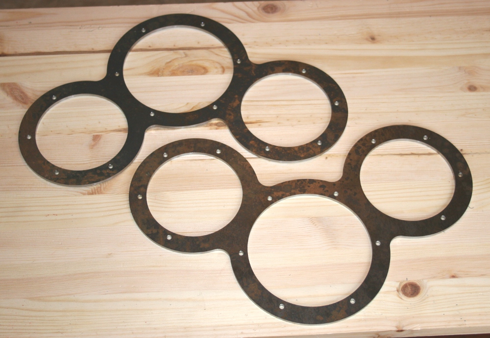 METAL BOOGIE 4 vastavaiheeen muuntajaa. Tämän jälkeen oli luonnollista käyttää suojaa tässä vahvistimessa. Alla ovat kuvat suojan kehyksistä ja sorvatuista kiekoista.